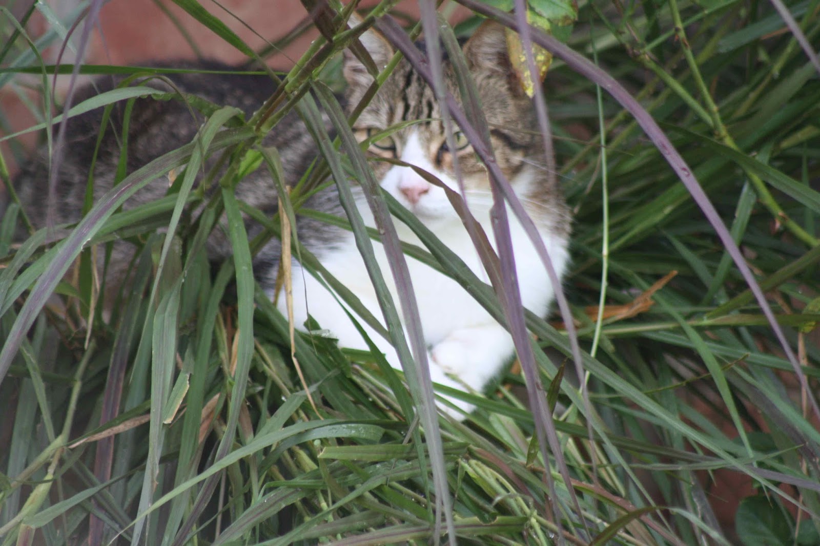 So cute! I guess the fountain grass will bounce back unless kitty makes it a permanent bed?